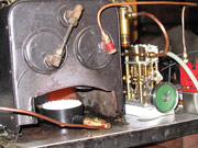 24th July 2006 Clinton Taylor's gas fired old model boiler hooked up to Gage TVR1a. The ceramic burner is no longer available from Cheddar but the are shortly to be manufactured here in Australia and available again soon. |